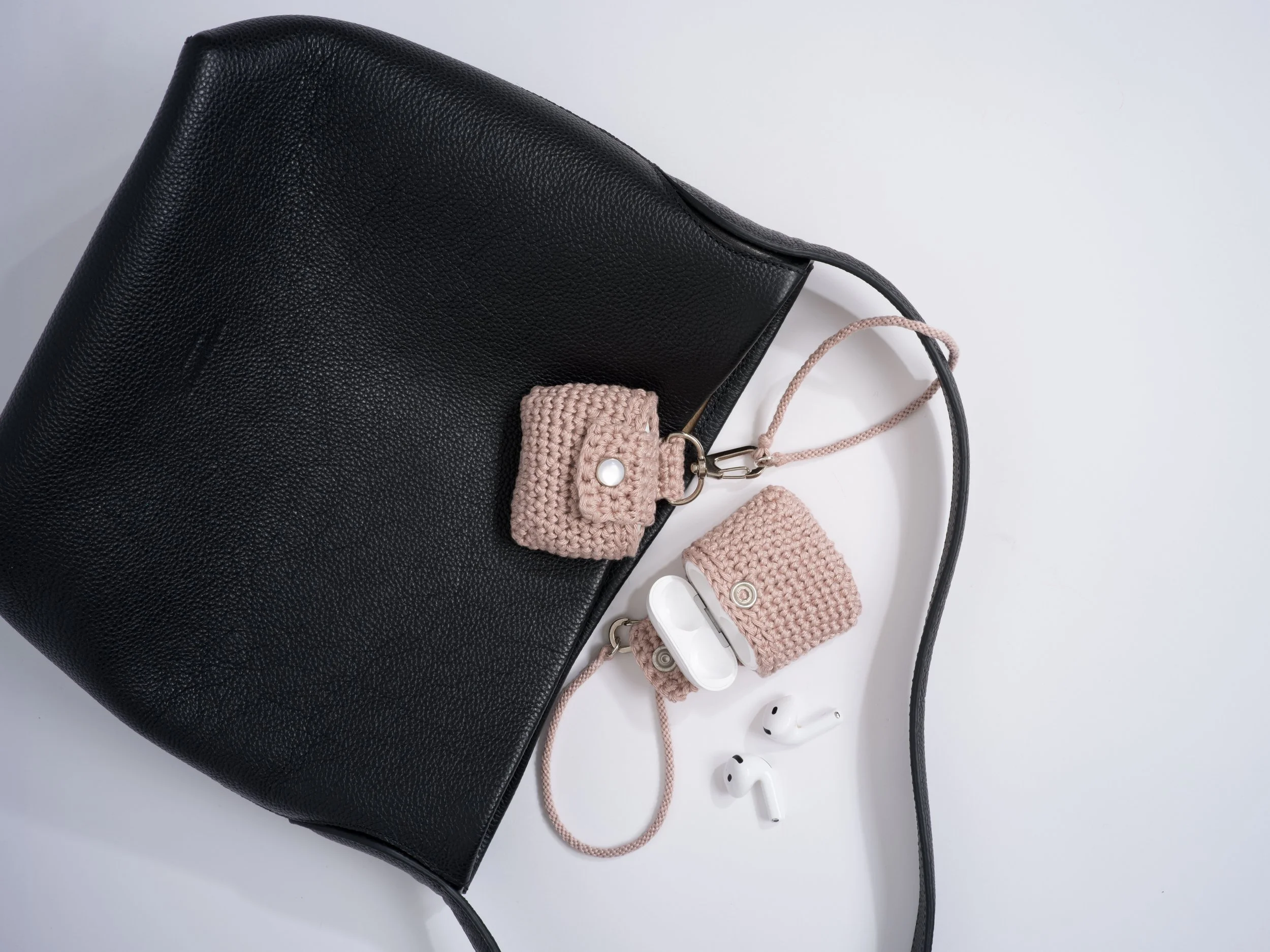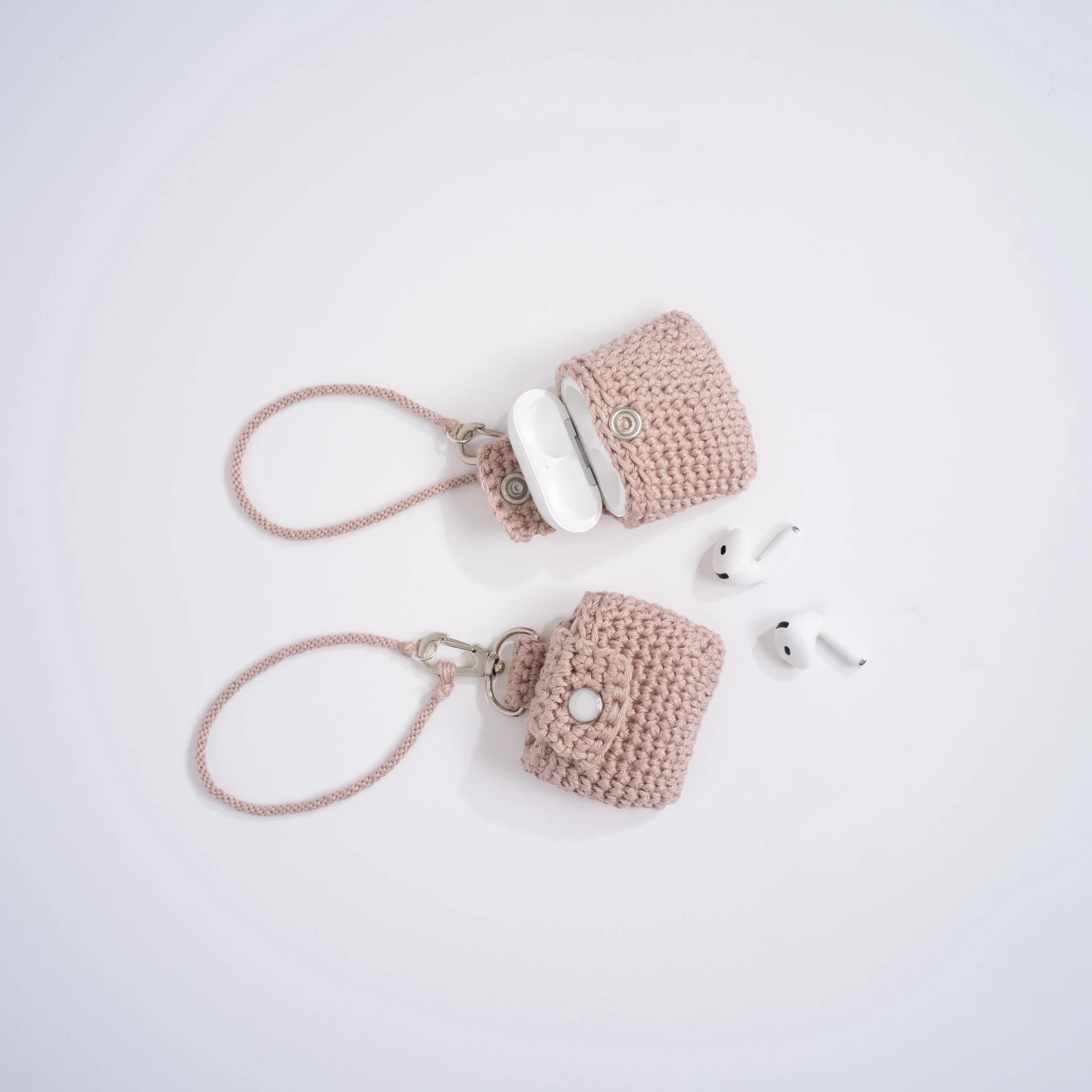 Hæklet AirPods holder. 7 × 6 × 2 cm.